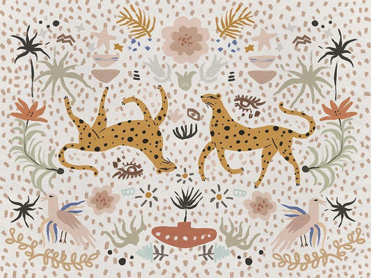 Leaping Leopards White Modern Wood Framed Art Print with Double Matting by Urban Road