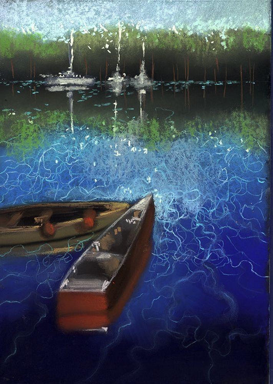 Electric Blue II White Modern Wood Framed Art Print with Double Matting by Ricci