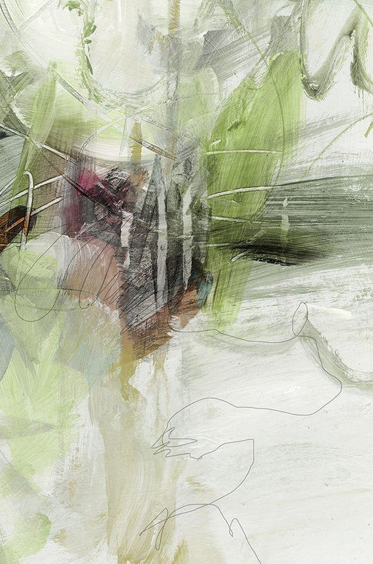 Greenscape I White Modern Wood Framed Art Print with Double Matting by King