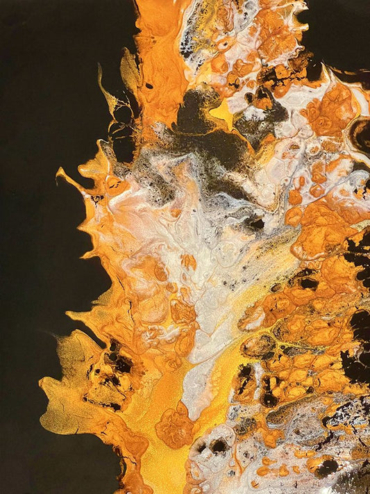Gold Pour 1 White Modern Wood Framed Art Print with Double Matting by Tenoever, William