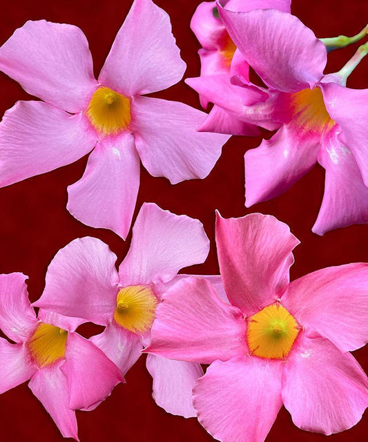 Pink Flowers on Red White Modern Wood Framed Art Print with Double Matting by Tenoever, William