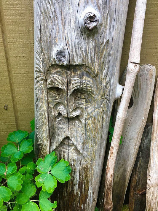Wooden Face I White Modern Wood Framed Art Print with Double Matting by Grayscale