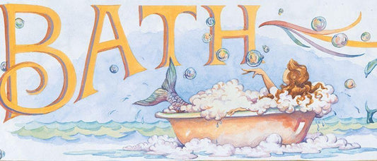 Mermaid Bath White Modern Wood Framed Art Print with Double Matting by Unknown