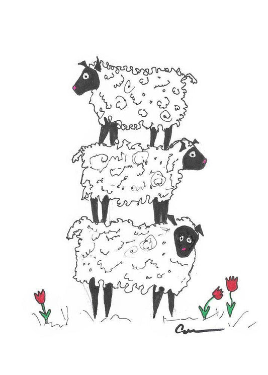 Stacked Sheep White Modern Wood Framed Art Print with Double Matting by Carroccio, Lisa