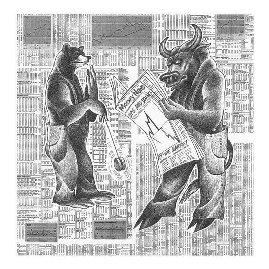Market Ups and Downs White Modern Wood Framed Art Print with Double Matting by Vilar, Roger