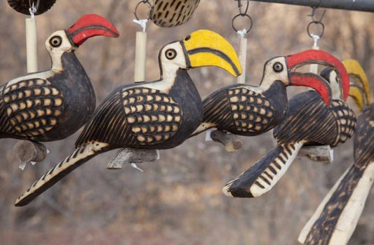 Wooden bird carvings, Etosha NP, Namibia White Modern Wood Framed Art Print with Double Matting by Kaveney, Wendy