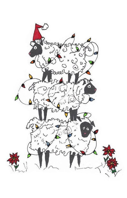 Stacked Sheep at Christmas White Modern Wood Framed Art Print with Double Matting by Carroccio, Lisa