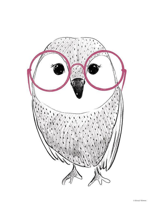 Owl in Pink Glasses White Modern Wood Framed Art Print with Double Matting by Nieman, Rachel