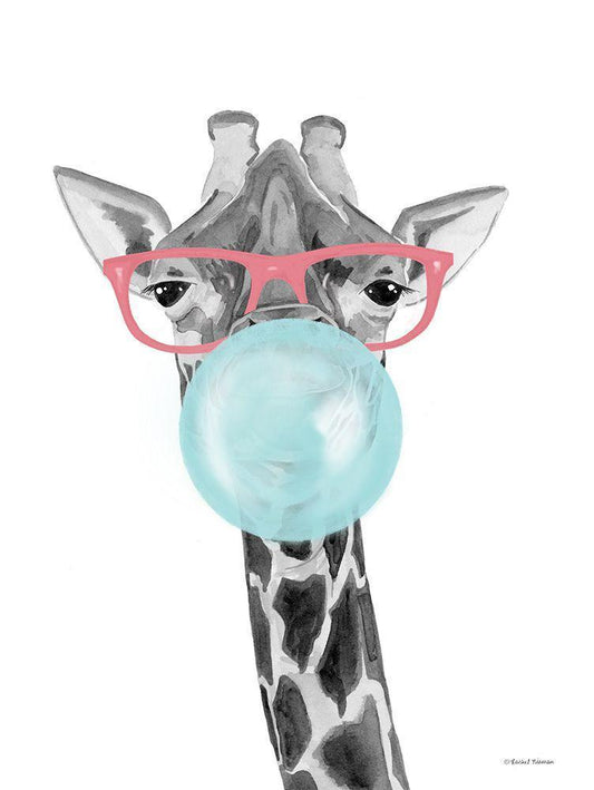 Bubble Gum Giraffe White Modern Wood Framed Art Print with Double Matting by Nieman, Rachel