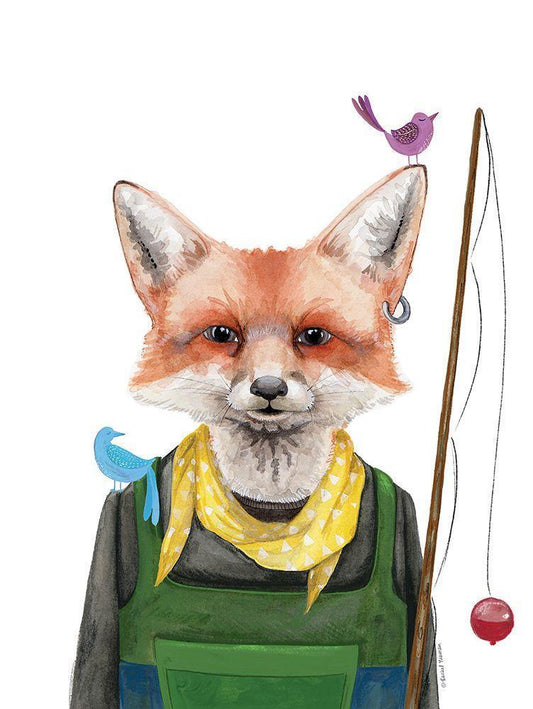 Fishing Fox White Modern Wood Framed Art Print with Double Matting by Nieman, Rachel