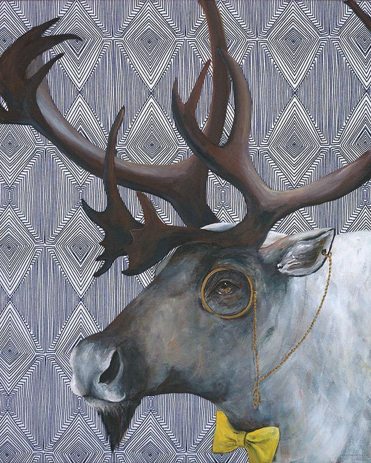 Mr. Caribou White Modern Wood Framed Art Print with Double Matting by Kamdon Kreations