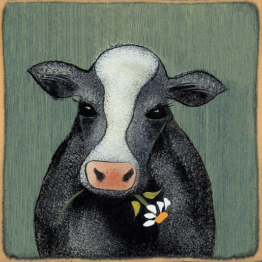 Patience the Cow White Modern Wood Framed Art Print with Double Matting by Hollihocks Art