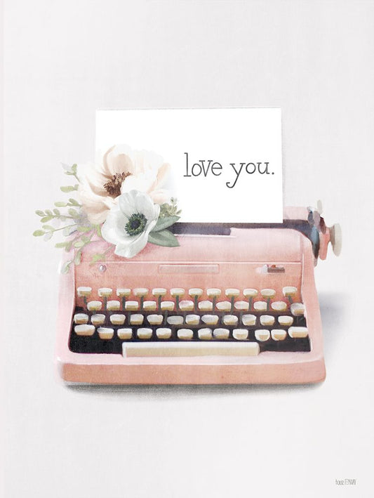 Love Letter Typewriter White Modern Wood Framed Art Print with Double Matting by House Fenway