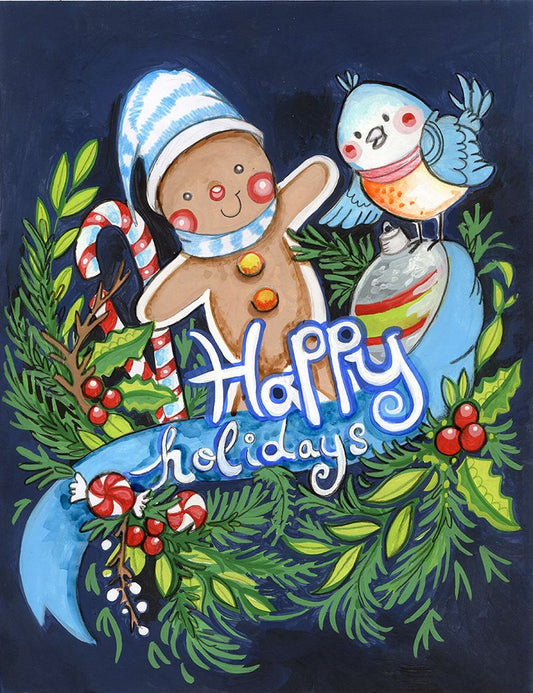 Happy Holidays Black Ornate Wood Framed Art Print with Double Matting by Wade, Valarie