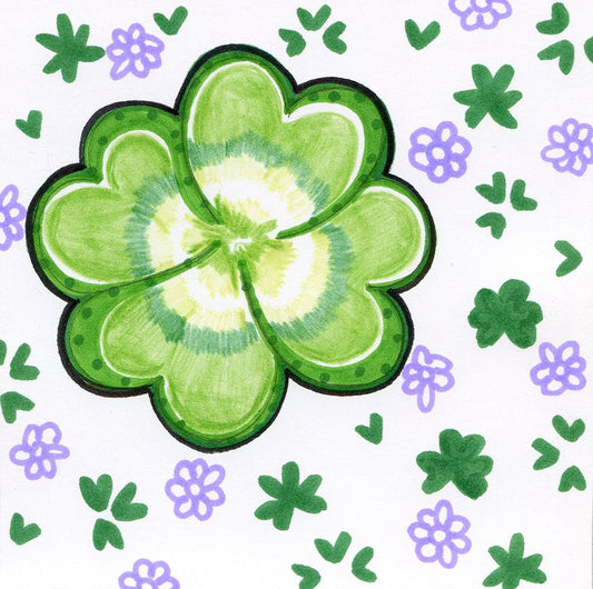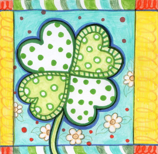 Four Leaf Clover Black Ornate Wood Framed Art Print with Double Matting by Wade, Valarie