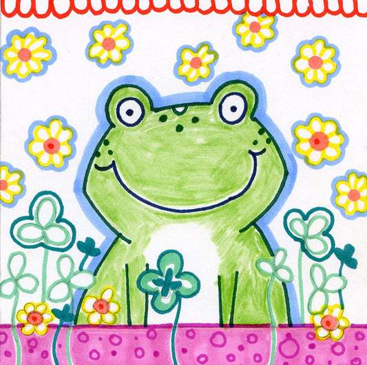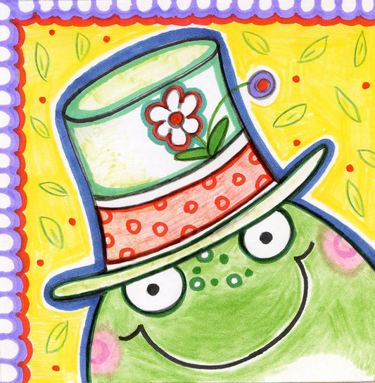 Happy Frog Black Ornate Wood Framed Art Print with Double Matting by Wade, Valarie
