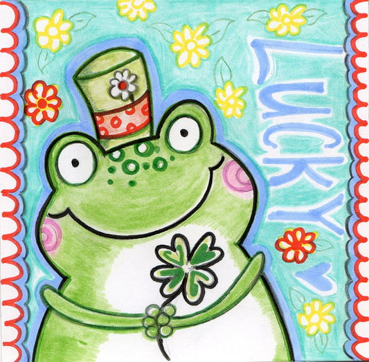 Lucky Frog Black Ornate Wood Framed Art Print with Double Matting by Wade, Valarie
