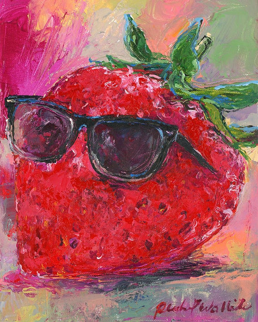 Strawberry Black Ornate Wood Framed Art Print with Double Matting by Sheena Pike Art