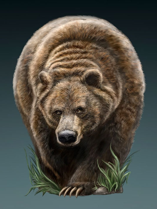 Grizzly on Grass Black Ornate Wood Framed Art Print with Double Matting by LaMontagne, Patrick