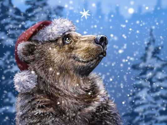 Christmas Bear Black Ornate Wood Framed Art Print with Double Matting by LaMontagne, Patrick