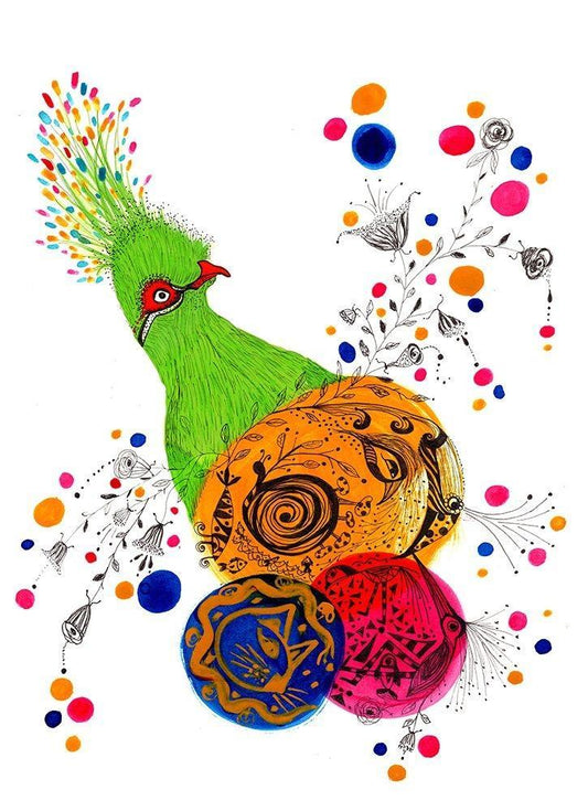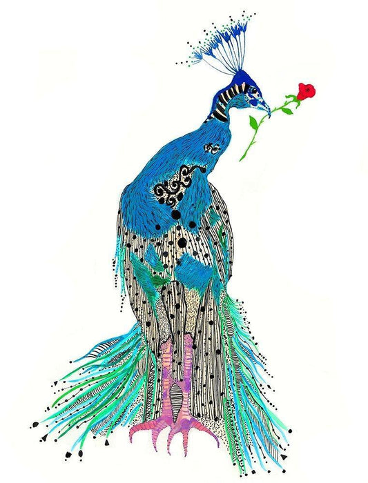 Pippy Peacock Black Ornate Wood Framed Art Print with Double Matting by Kwerki Studios
