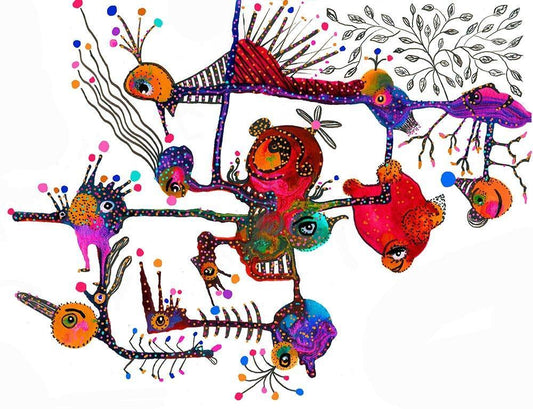 Mr. Grasshopper And Friends Black Ornate Wood Framed Art Print with Double Matting by Kwerki Studios