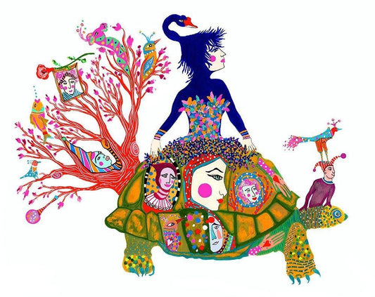 Tortoise Carnival Black Ornate Wood Framed Art Print with Double Matting by Kwerki Studios