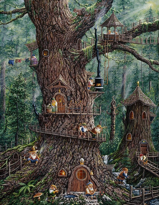 Gnomes Sweet Home Black Ornate Wood Framed Art Print with Double Matting by Tift, Jeff