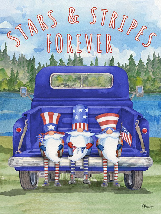 Patriotic Gnomes Truck Black Ornate Wood Framed Art Print with Double Matting by Brent, Paul