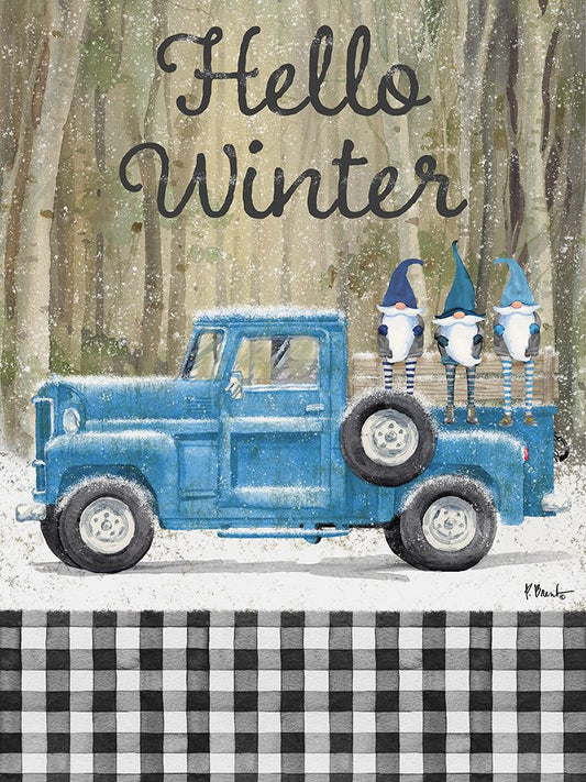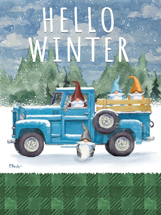 Winter Gnome Ride Vertical Black Ornate Wood Framed Art Print with Double Matting by Brent, Paul