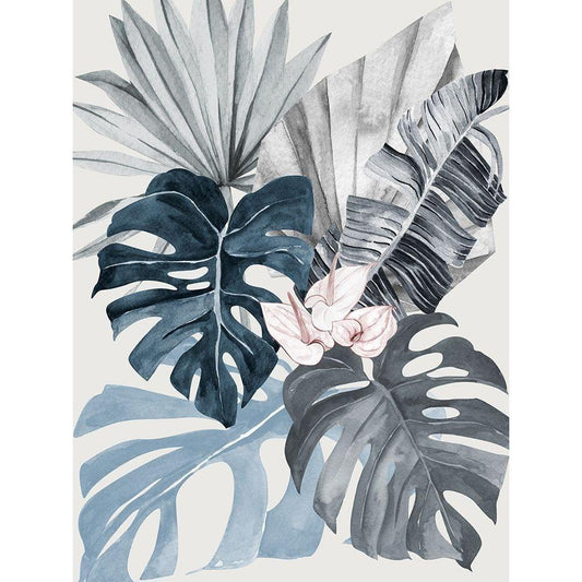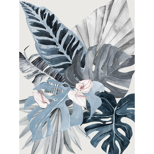 Tropical Leaves Blue I Poster Black Modern Wood Framed Art Print with Double Matting by Urban Road