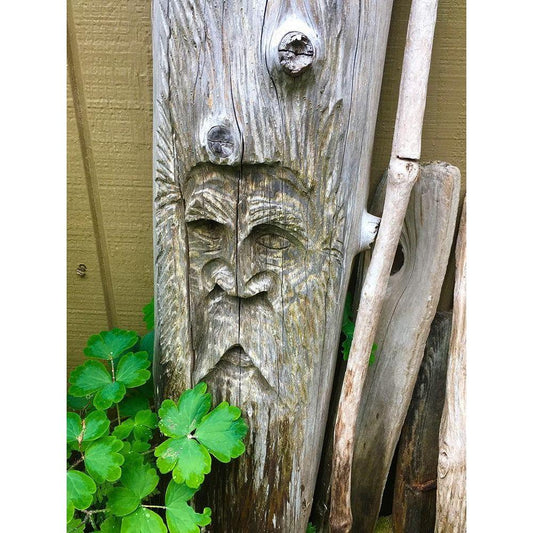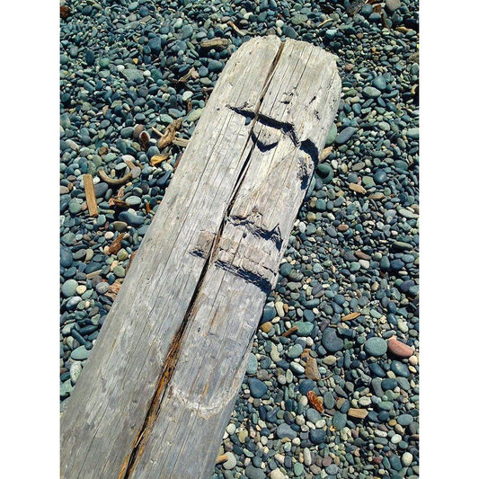 Wooden Face I Black Modern Wood Framed Art Print with Double Matting by Grayscale
