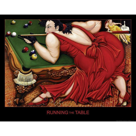 Running the Table - Billiards Black Modern Wood Framed Art Print with Double Matting by Frontline