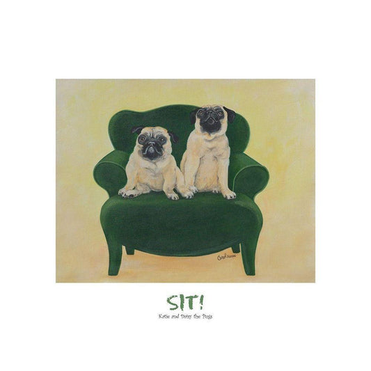 Pugs Sitting on Chair Black Modern Wood Framed Art Print with Double Matting by Frontline