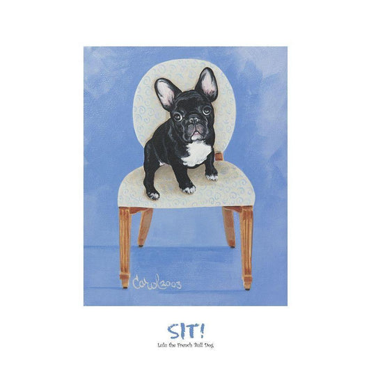Bull Dog Sitting on Chair Black Modern Wood Framed Art Print with Double Matting by Frontline
