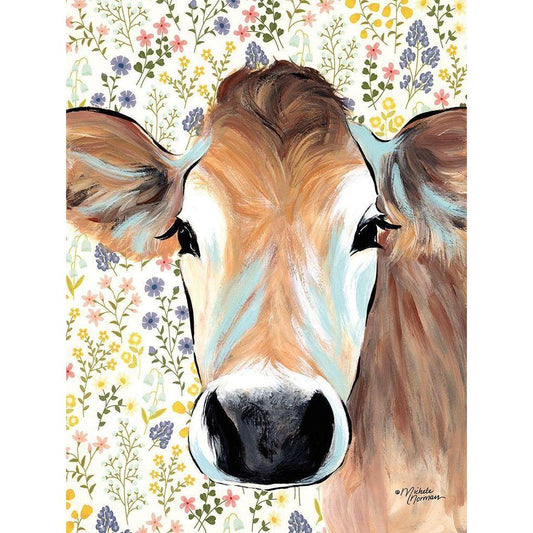 Jersey Cow with Floral Crown Black Modern Wood Framed Art Print with Double Matting by Norman, Michele