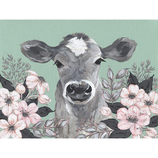 Bluebell Cow Black Modern Wood Framed Art Print with Double Matting by Norman, Michele