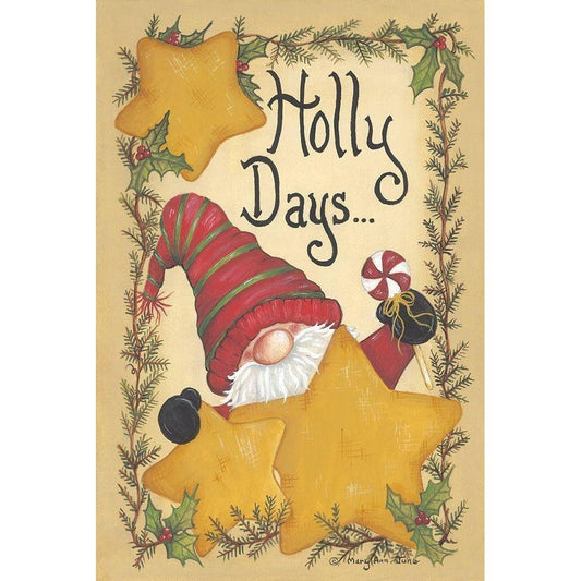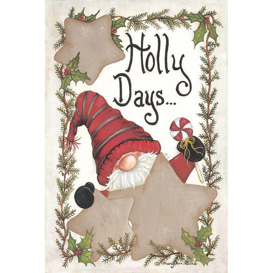 Holly Days Gnome Black Modern Wood Framed Art Print with Double Matting by June, Mary Ann