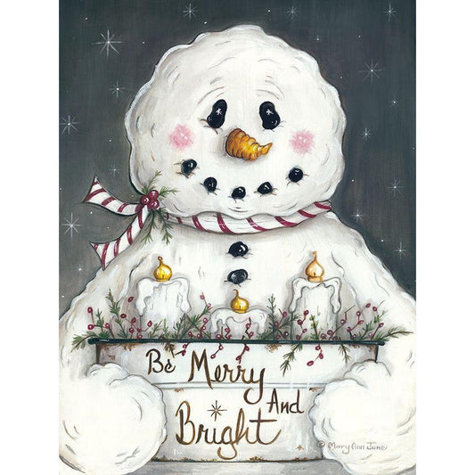 Merry and Bright Snowman Black Modern Wood Framed Art Print with Double Matting by June, Mary Ann