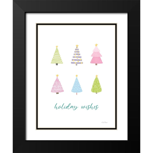 Holiday Wishes Pastel Christmas Trees Black Modern Wood Framed Art Print with Double Matting by Larson, Lisa