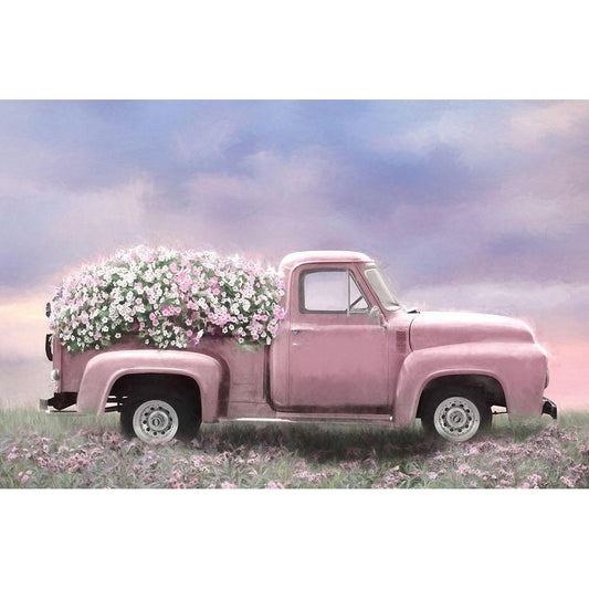 Pink Floral Truck Black Modern Wood Framed Art Print with Double Matting by Deiter, Lori