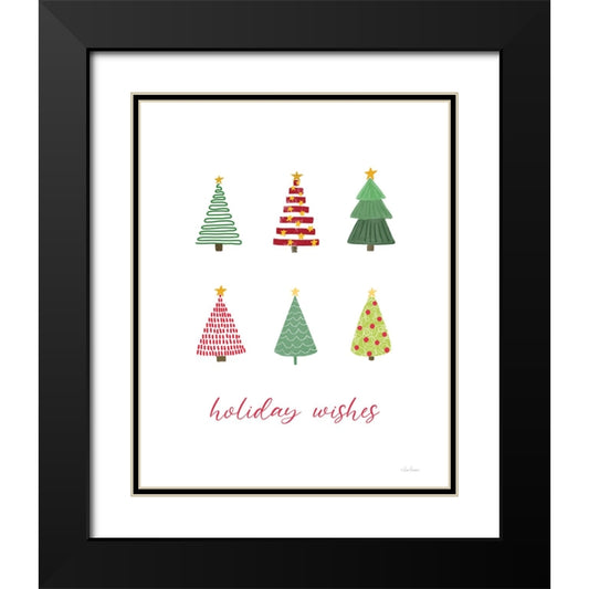 Holiday Wishes Christmas Trees Black Modern Wood Framed Art Print with Double Matting by Larson, Lisa