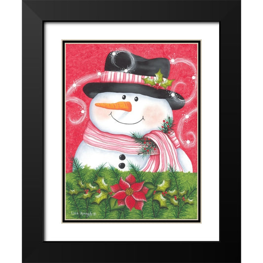Snowman And Poinsettia Black Modern Wood Framed Art Print with Double Matting by Kennedy, Lisa
