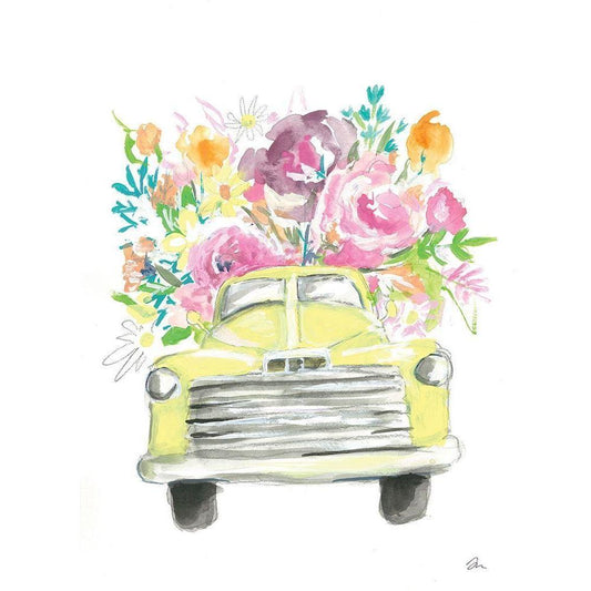 Yellow Flower Truck Black Modern Wood Framed Art Print with Double Matting by Mingo, Jessica
