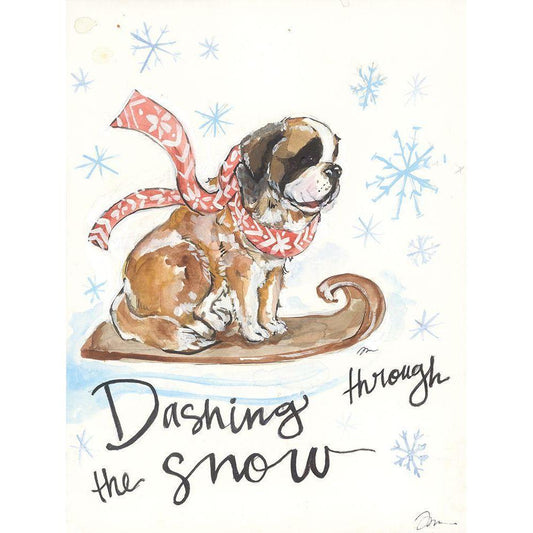 Dashing Through the Snow St. Bernard Black Modern Wood Framed Art Print with Double Matting by Mingo, Jessica