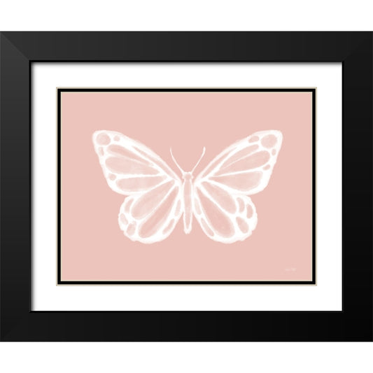 Blush Butterfly Black Modern Wood Framed Art Print with Double Matting by House Fenway