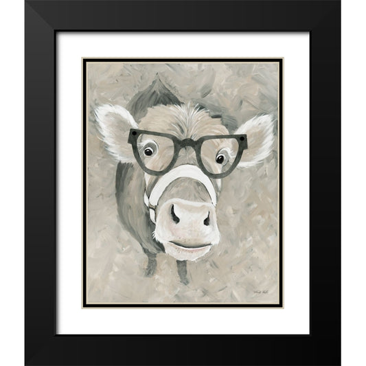 Hello There Cow Black Modern Wood Framed Art Print with Double Matting by Jacobs, Cindy