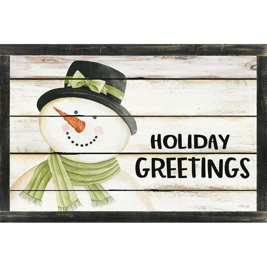 Holiday Greetings Snowman Black Modern Wood Framed Art Print with Double Matting by Jacobs, Cindy