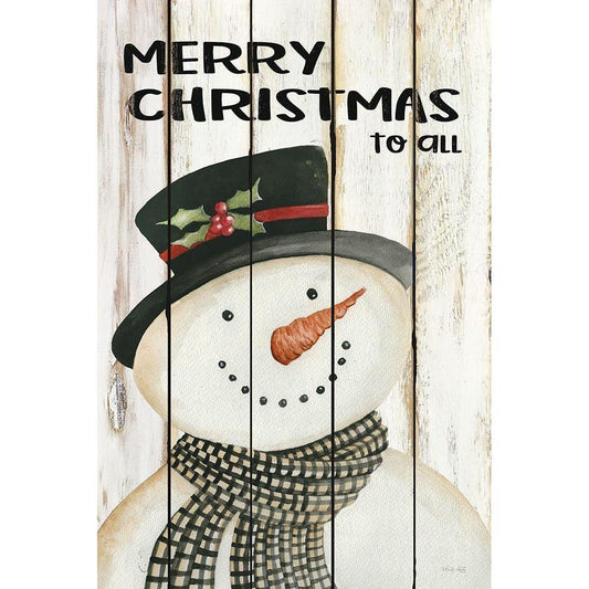 Merry Christmas to All Snowman Black Modern Wood Framed Art Print with Double Matting by Jacobs, Cindy