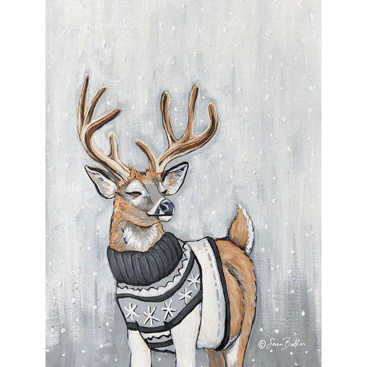 Stag in Sweater Black Modern Wood Framed Art Print with Double Matting by Baker, Sara